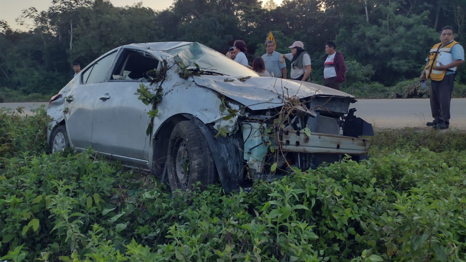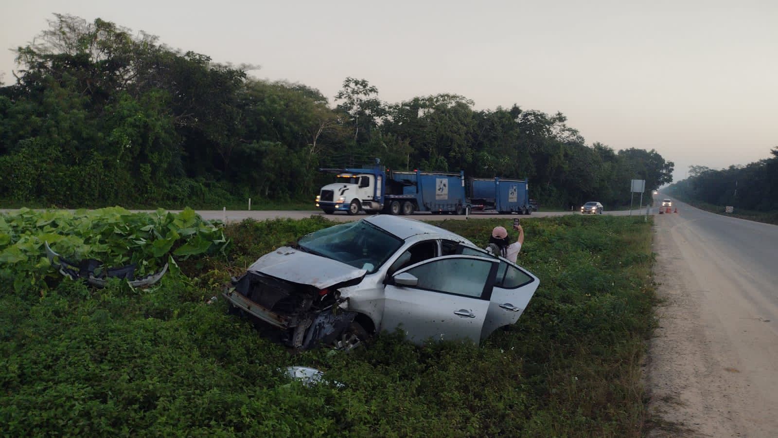 FELIPE CARRILLO PUERTO.- Dos mujeres y un hombre resultaron ilesos luego de sufrir un aparatoso accidente cuando viajaban en un automóvil compacto en el tramo Felipe Carrillo Puerto – Tulum.