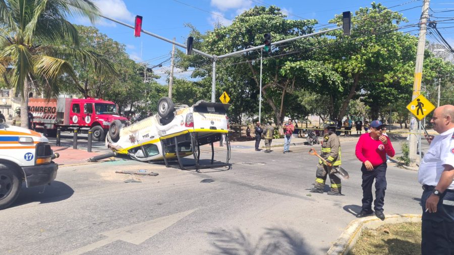 Cancún.- Un incidente vial en el cruce de las avenidas Andrés Quintana Roo y Chac Mool, a la altura de la región 96 en Cancún, dejó como resultado la volcadura de una camioneta de la dirección de Tránsito Municipal y una persona lesionada.