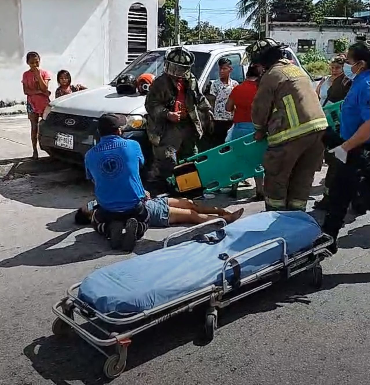 la pasajera resultó seriamente lesionada en una pierna, mientras quien conducía la moto roja también fue curado de las lesiones y el conductor del auto fue atendido por una crisis nerviosa.