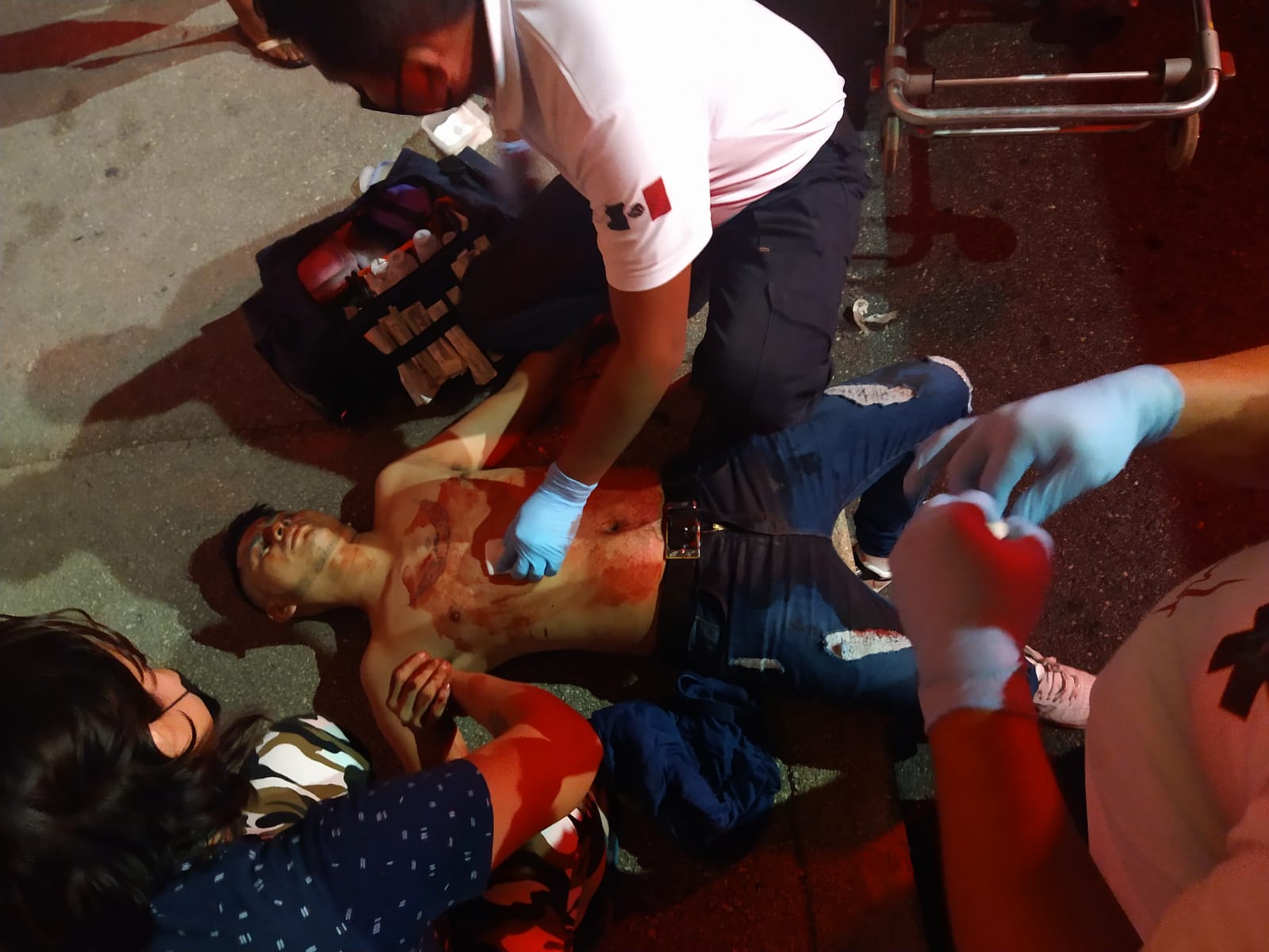 Paramédicos de una empresa particular llegaron al lugar para auxiliarlo, ya que presentó una herida de arma blanca abajo de la tetilla derecha, por lo que fue trasladado al Hospital General para su atención.