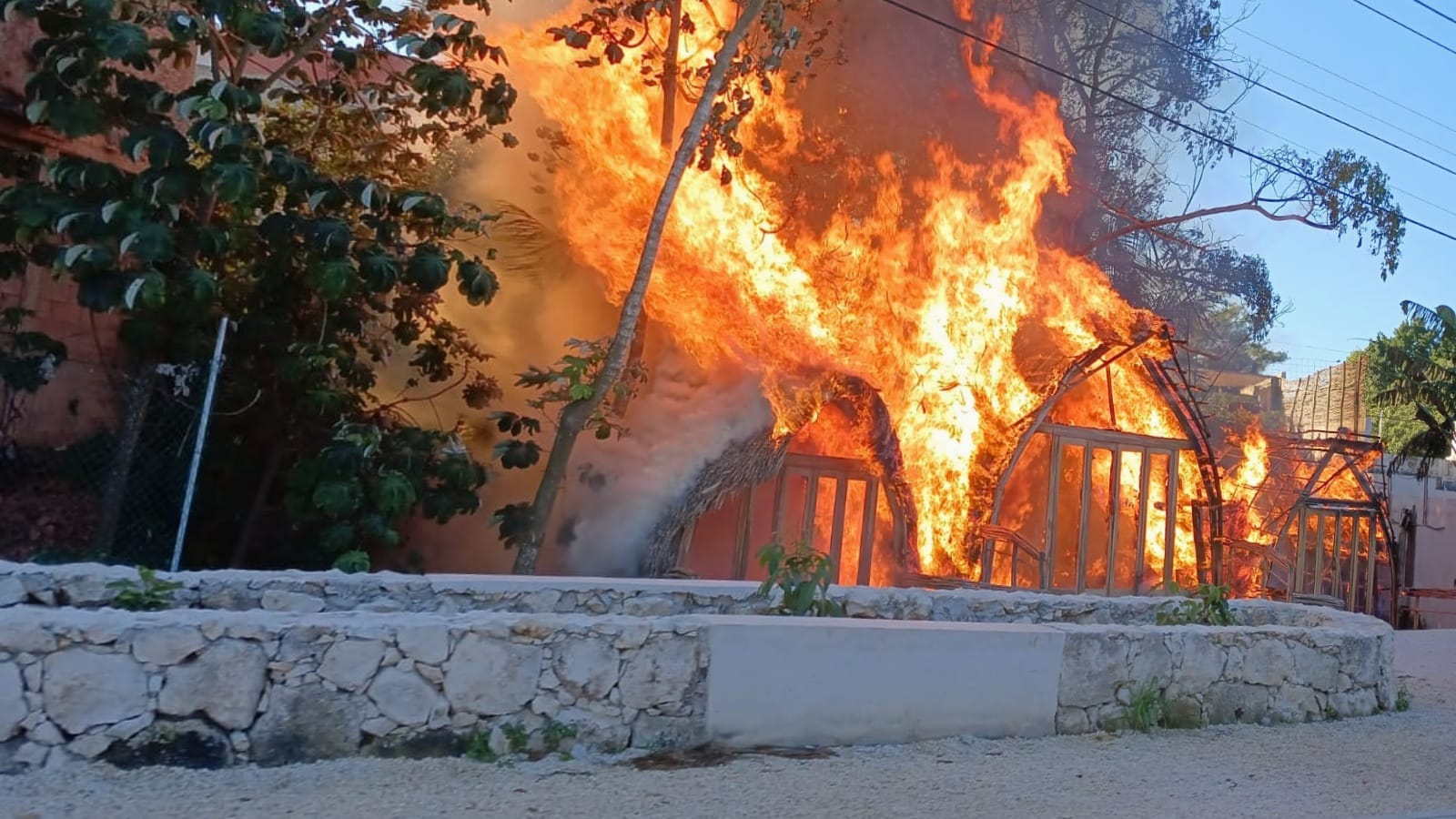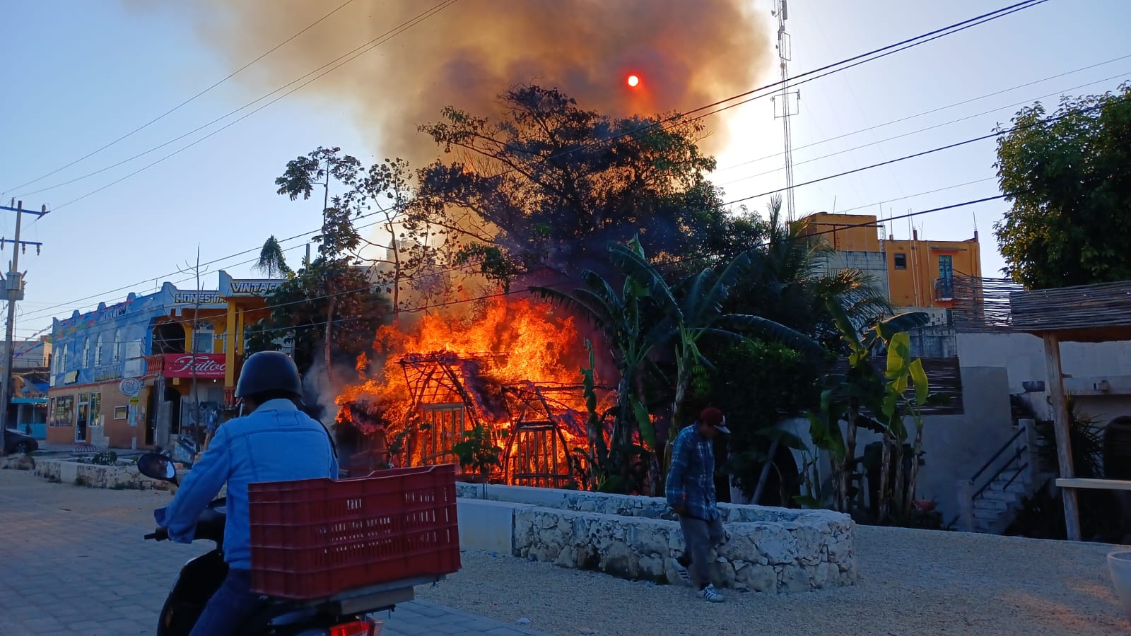 TULUM.- Tres cabañas que eran usadas como locales se incendiaron esta mañana de lunes por causas aún desconocidas, en la avenida Tulum que se ubica en la cabecera de este municipio.