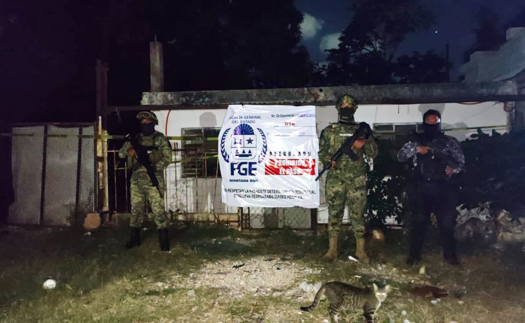 Durante la diligencia, elementos del Ejército Mexicano y de la Secretaría de Marina realizaron tareas de apoyo y vigilancia perimetral y al término se colocaron sellos de aseguramiento al inmueble que quedó bajo custodia de la Policía Quintana Roo.