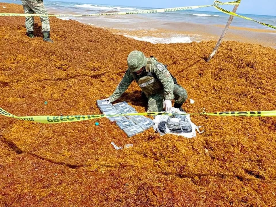 Aunque no se precisa en qué puntos se encontró la droga, de acuerdo con fotografías que se proporcionaron, estaban entre una importante cantidad de sargazo que recaló en las costas de la isla.