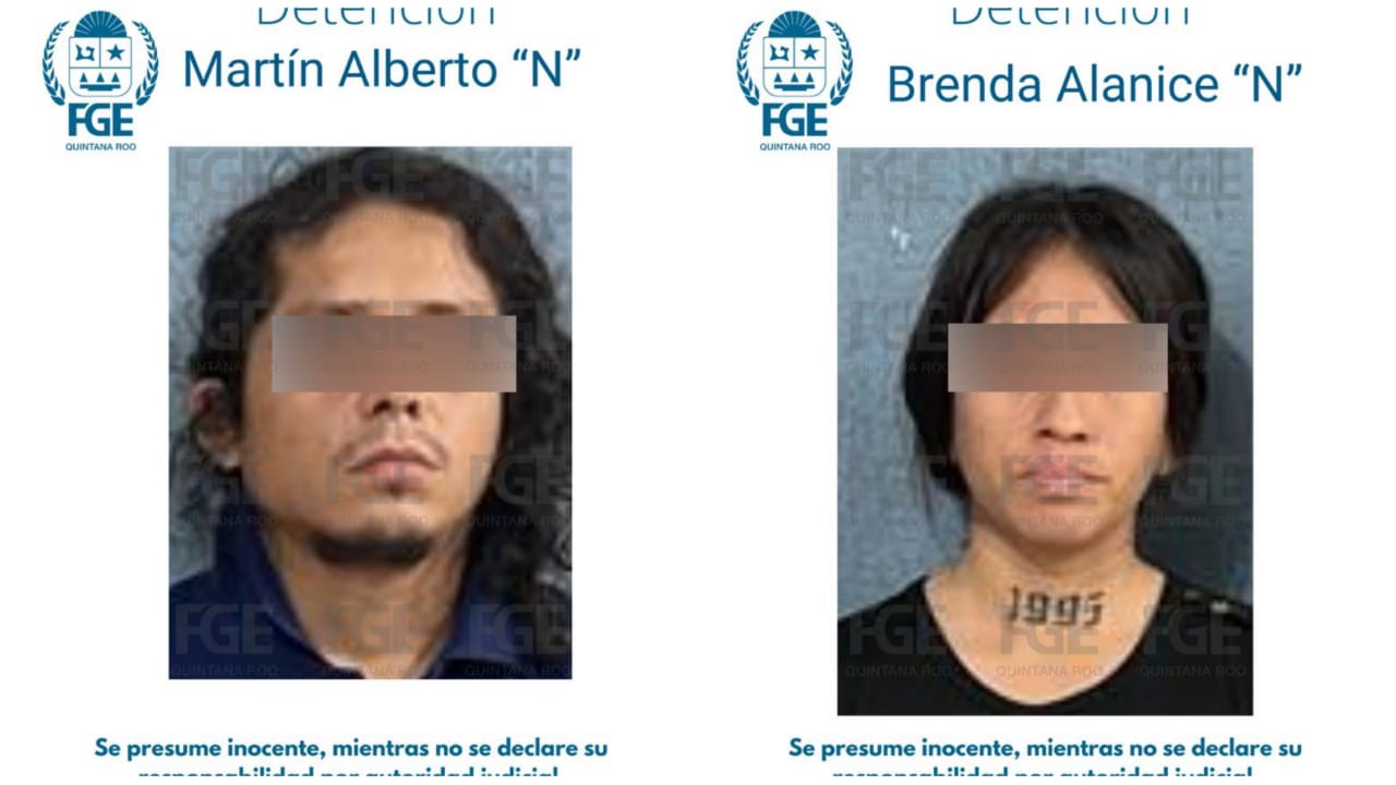 Los detenidos son Martín Alberto “N” y Brenda Alanice “N”, quienes fueron interceptados por elementos de la Policía de Investigación adscritos a la Fiscalía Especializada en Delitos contra la Salud en su modalidad de Narcomenudeo, cuando realizaban actividades de investigación al circular sobre la calle 24 poniente en la Supermanzana 94 de este municipio.