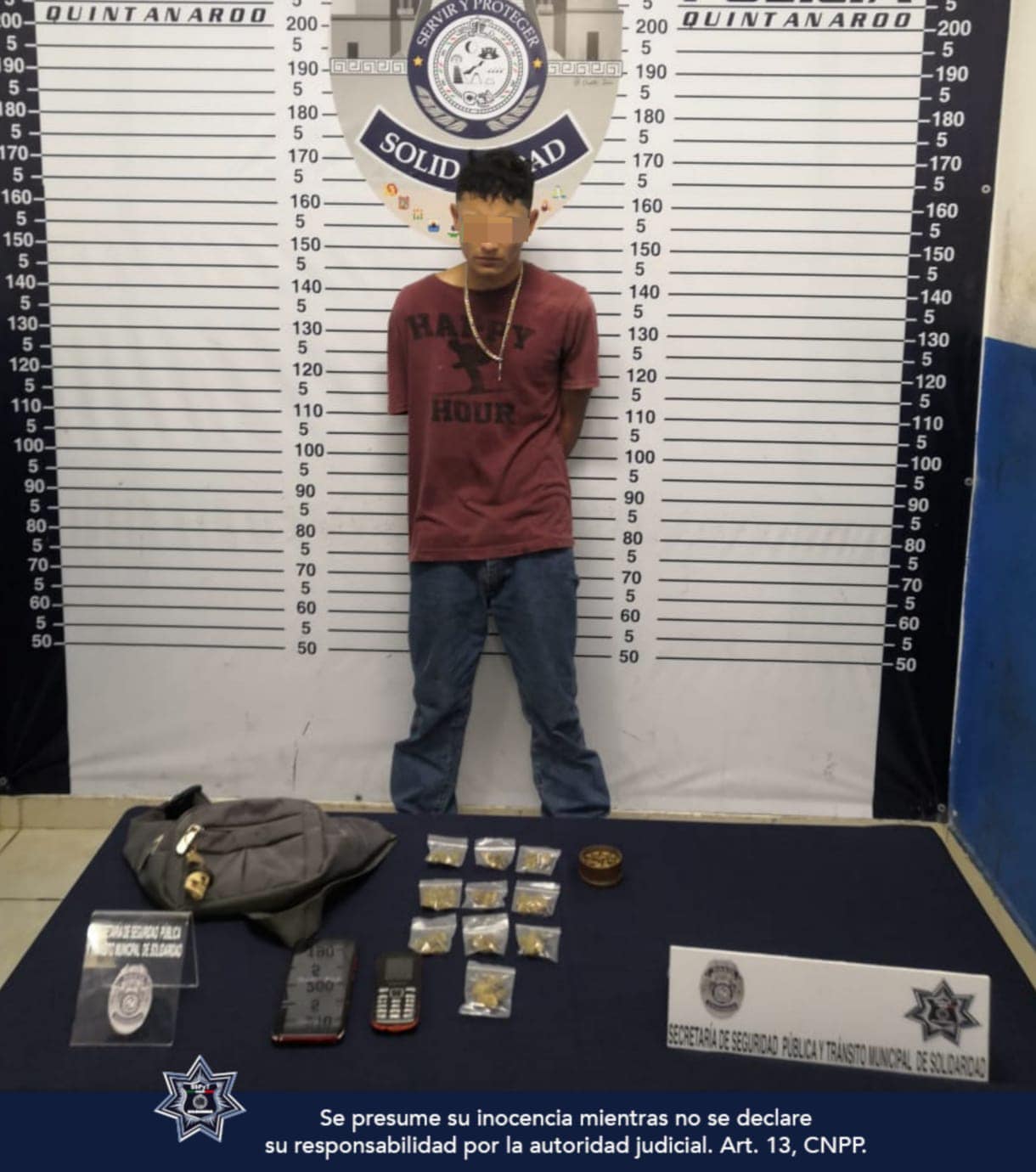 PLAYA DEL CARMEN.- Una persona fue asegurada en posesión de posibles narcóticos por policías de la Secretaría de Seguridad Pública y Tránsito Municipal de Solidaridad durante un operativo de vigilancia en la colonia Luis Donaldo Colosio.