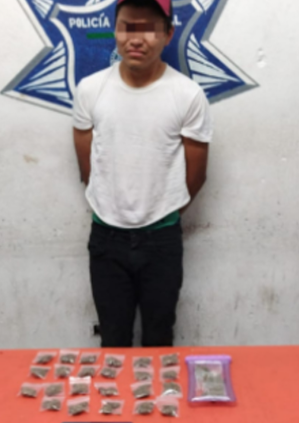 Los oficiales dieron con el sujeto, quien fue identificado como Iván “N” de 20 años, se le encontró entre sus pertenencias una bolsa con 23 bolsitas de marihuana y un protector de celular que tenía 3 bolsitas con hierba, por lo que fue puesto a disposición de la Fiscalía General del Estado, por la posible comisión de delitos contra la salud