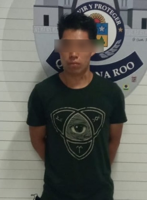 CANCÚN.- Oficiales de la Policía Quintana Roo detuvieron a un masculino que se identifico como Benancio “N” de 22 años de edad, originario de Chiapas