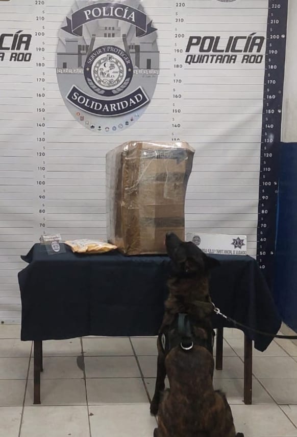 Más tarde el mismo día, elementos de la Unidad Canina, acudieron a la empresa de paquetería que se ubica sobre la avenida prolongación Colosio del Fraccionamiento Villas del Sol, donde reportaron un aroma característico de la marihuana, en el lugar el oficial canino realizó un marcaje sobre un paquete en el que reconoció aromas para los que fue entrenado.