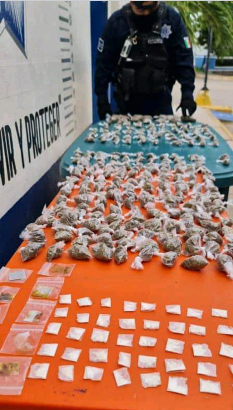 PLAYA DEL CARMEN. Elementos de la Policía Quintana Roo, apoyados por binomios caninos, aseguraron 231 bolsas que contenían vegetal seco, con las características de la marihuana, 40 que tenían en su interior una sustancia granulada por determinar y 10 con una pasta marrón también por identificar.