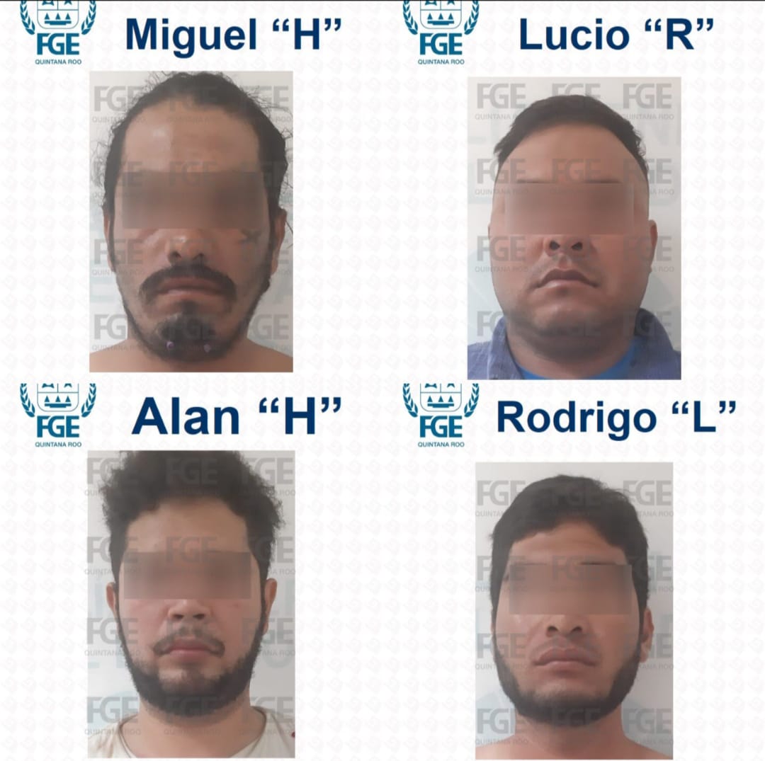 TULUM.- La Fiscalía general del Estado de Quintana Roo, dio a conocer la detención de Lucio “R”, Miguel “H”, Alan “H” y Rodrigo “L” por su probable participación en delitos contra la salud en su modalidad de narcomenudeo.