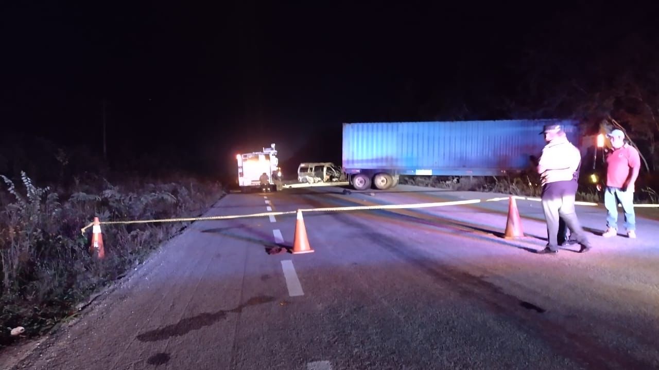 FELIPE CARRILLO PUERTO .- El choque de una van de Untrac con un tráiler en la carretera federal 307, a unos 10 minutos al sur de esta ciudad, dejó a nueve personas sin vida, además de seis lesionadas, la madrugada de hoy lunes.