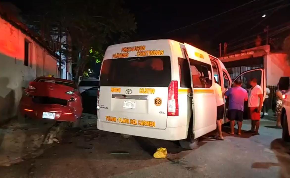 Tulum.- Un auto, cuyo conductor se encontraba en estado de ebriedad, se voló el alto y se impactó contra una combi de transporte público, la noche de ayer en el centro de esta ciudad.