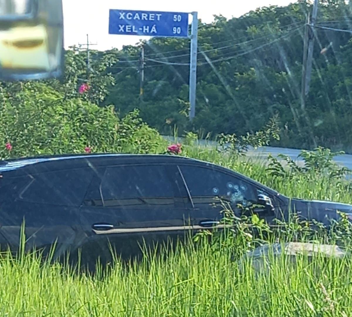 Cancún.- Una camioneta negra se salió de la carretera federal 307, en el tramo Cancún-Playa de Carmen, después de haber sido atacada a balazos, esta tarde, por sujetos desconocidos. Dos personas venían a bordo.