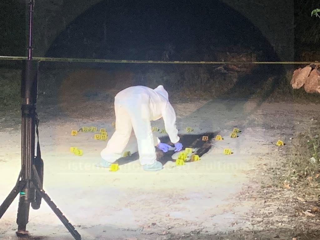 Agentes de investigación y peritos de la Fiscalía General del Estado llegaron poco después al lugar, para levantar cerca de 30 casquillos percutidos, aparentemente todos de R-15.