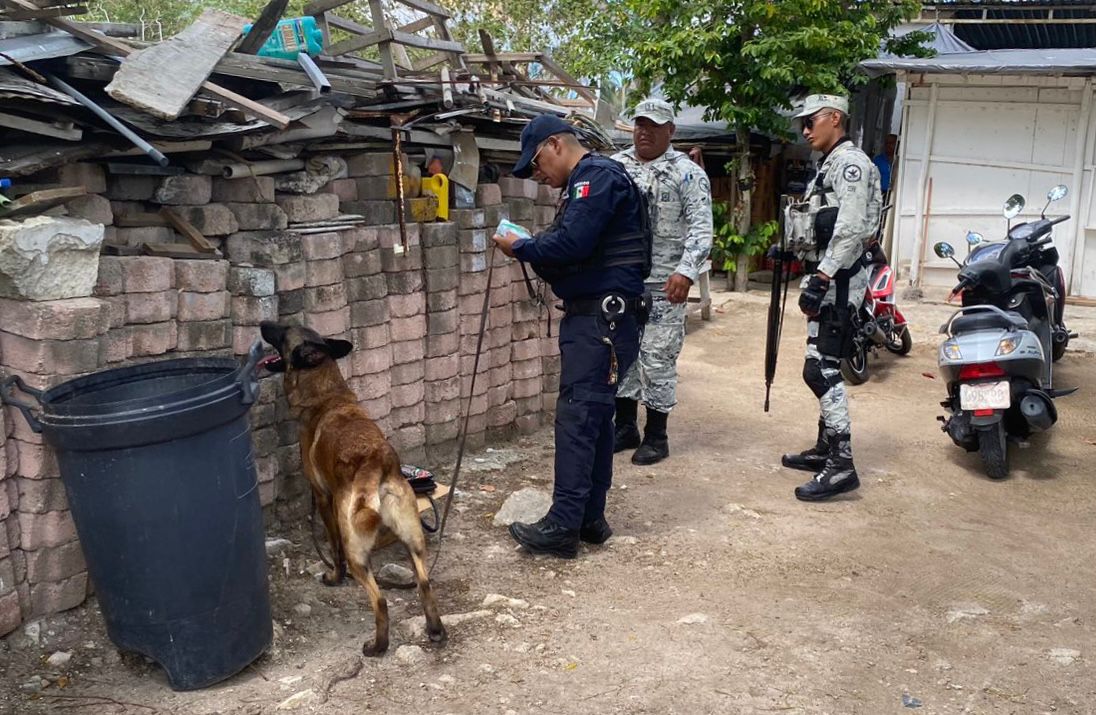 Alrededor de las 3:30 de la tarde, elementos de la policía municipal, Marina y Guardia Nacional, con ayuda del binomio canino detectaron entre unos adoquines acomodados como resguardo, una bolsita de nailon transparente tipo ziploc.