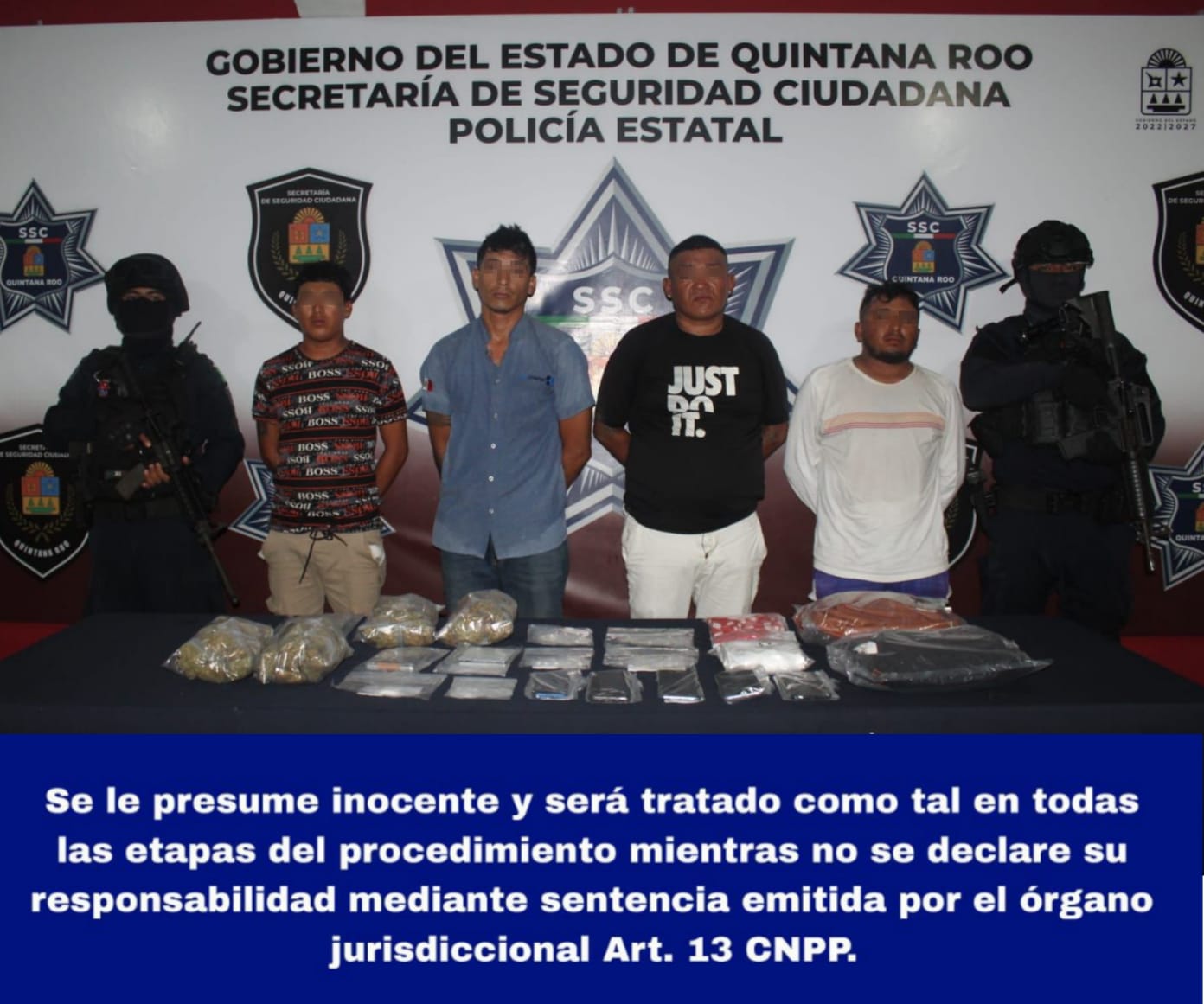 Una alerta a los policías turísticas a través del 911, lograron capturar a Julio “N”, Erick “N”, Vicente “N” y Yair “N” por su probable participación en delitos contra la salud en su modalidad de narcomenudeo, en el municipio de Benito Juárez.