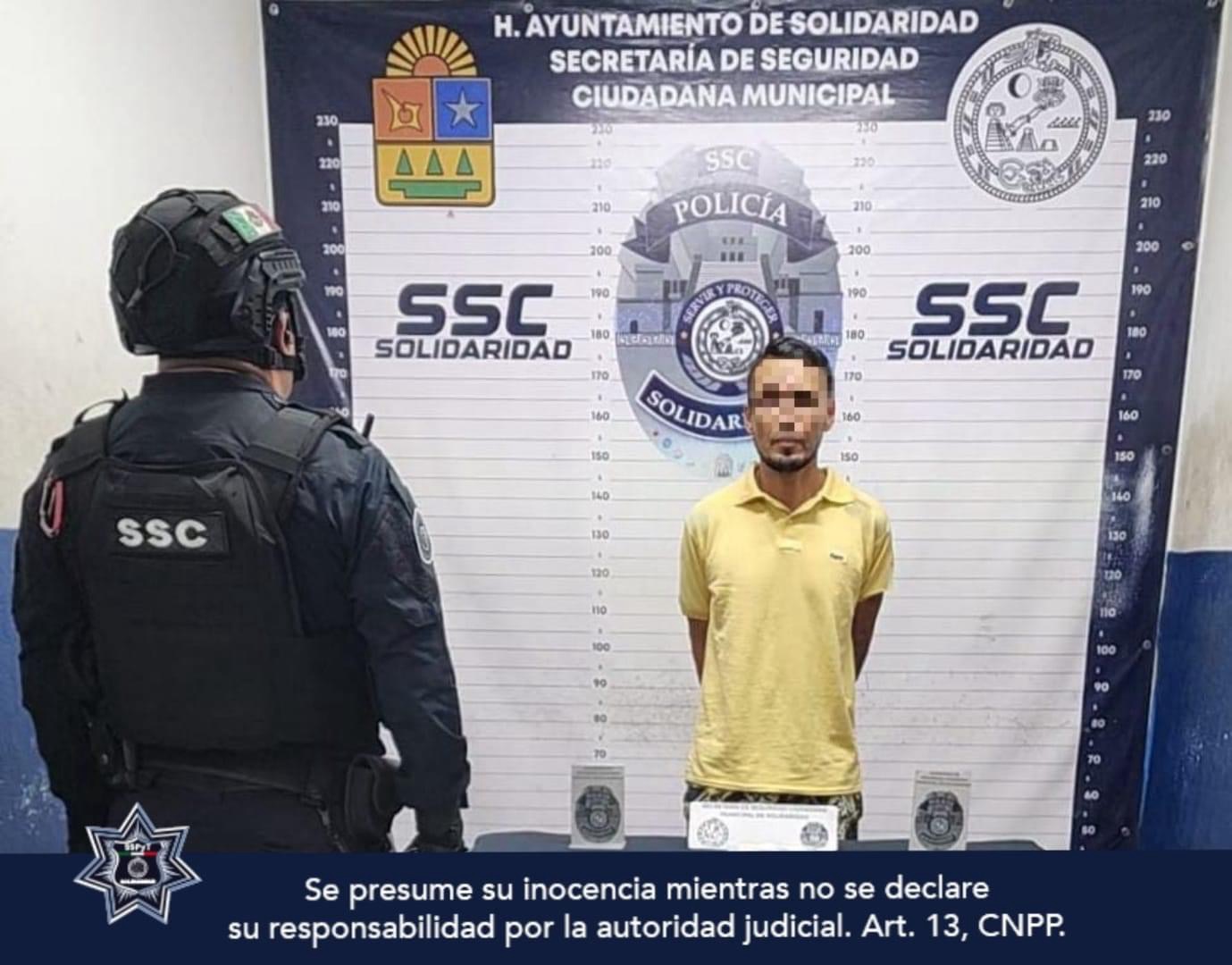 En respuesta a una solicitud de auxilio, la Policía Municipal de Solidaridad realizó la detención de una persona por el posible delito de extorsión a un comercio, en el marco de las acciones preventivas contra este delito.