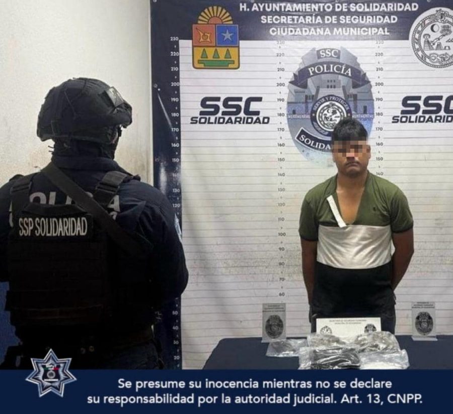 Playa del Carmen.- La Secretaría de Seguridad Ciudadana Municipal (SSCM) de Solidaridad detuvo a una persona de sexo masculino en posesión de 92 dosis de posibles narcóticos y se le aseguró una motocicleta, en el fraccionamiento Villas del Sol.