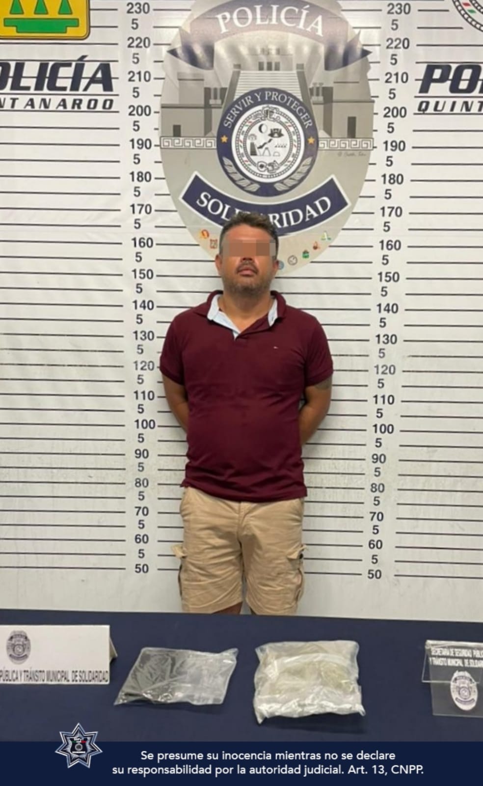 Playa del Carmen, Solidaridad.- Policías de la Secretaría de Seguridad Pública y Tránsito Municipal de Solidaridad aseguraron a un sujeto en posesión de posible marihuana en la colonia Colosio luego de que conducía de forma imprudente y faltando al Reglamento de Tránsito.