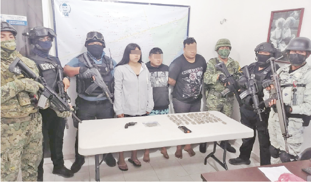 Los aprehendidos fueron identificados como Karla “N”, de 19 años, Ángel “N” de 24 y Joel “N” de 30, este último fue señalado como el presunto líder de “Los Cebúes”, un grupo delictivo de la región.