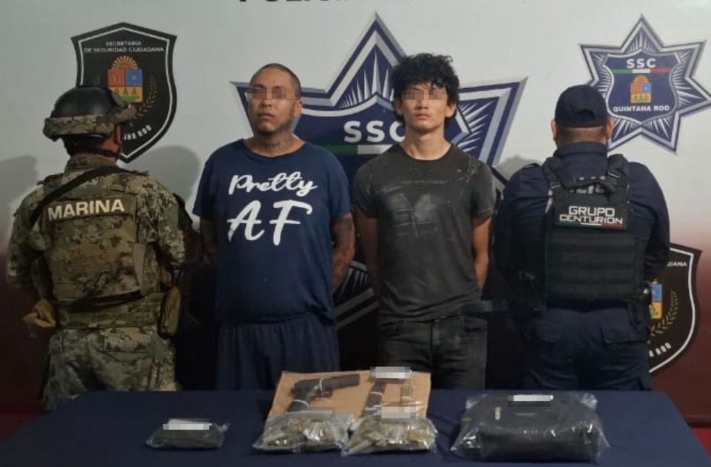 Efectivos de la Seguridad del Estado, con apoyo de uniformados federales, detuvieron a dos hombres que fueron identificados como Francisco Arturo “N” y Ulises Daniel “N”, presuntos implicados en delitos contra la salud y violación a la Ley Federal de Armas de Fuego y Explosivos.
