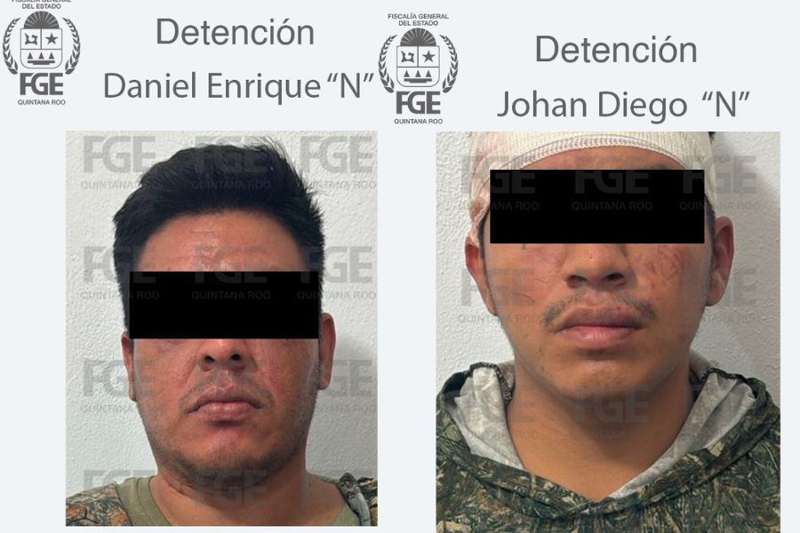 Puerto Morelos.- La Fiscalía General del Estado dio a conocer la detención de Johan Diego “N” y Daniel Enrique “N”, sujetos involucrados en el frustrado intento de asalto a una joyería en Puerto Morelos.