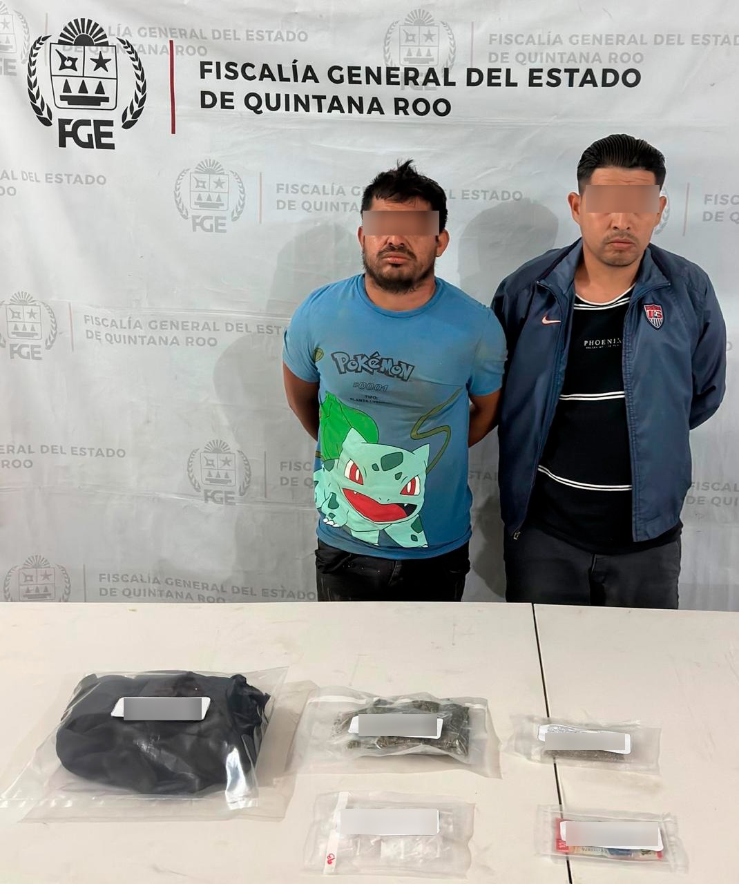Posteriormente, agentes de la Policía de Investigación detuvieron a David “N” y Edgar Eduardo “N”, en la avenida Costa Maya esquina con calle Kanisté, en la Supermanzana 245 de este municipio.