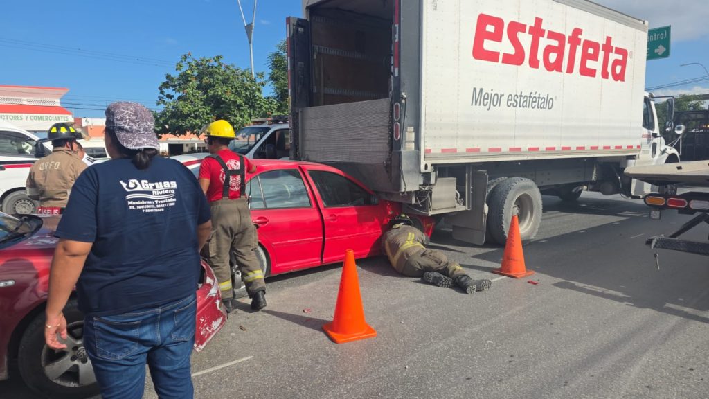 Cancún.- Una carambola interrumpió la mañana de este miércoles en la avenida José López Portillo, a la altura de la avenida Nichupté, dejando a varias personas con lesiones leves, daños materiales considerables y fuerte congestionamiento vial.