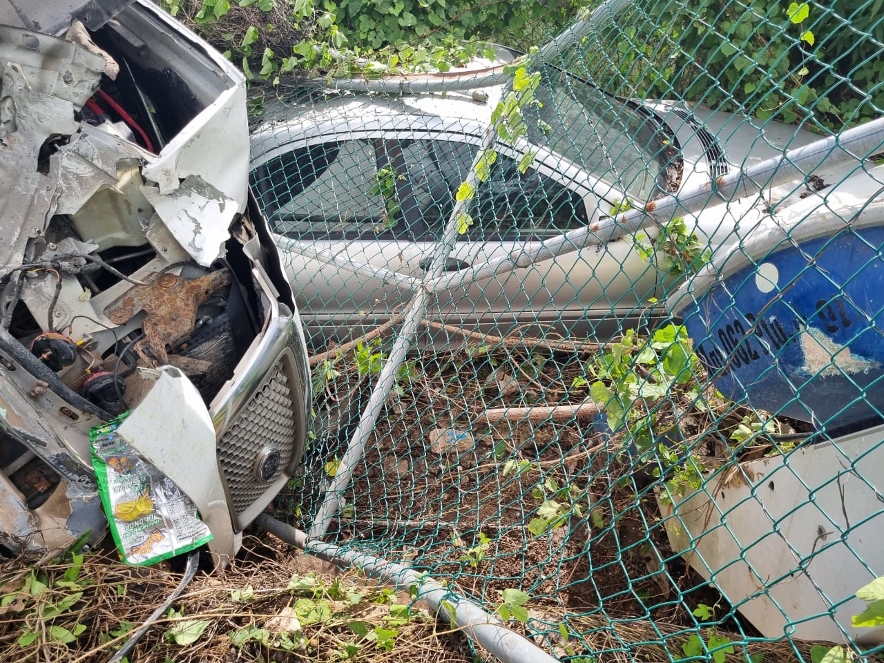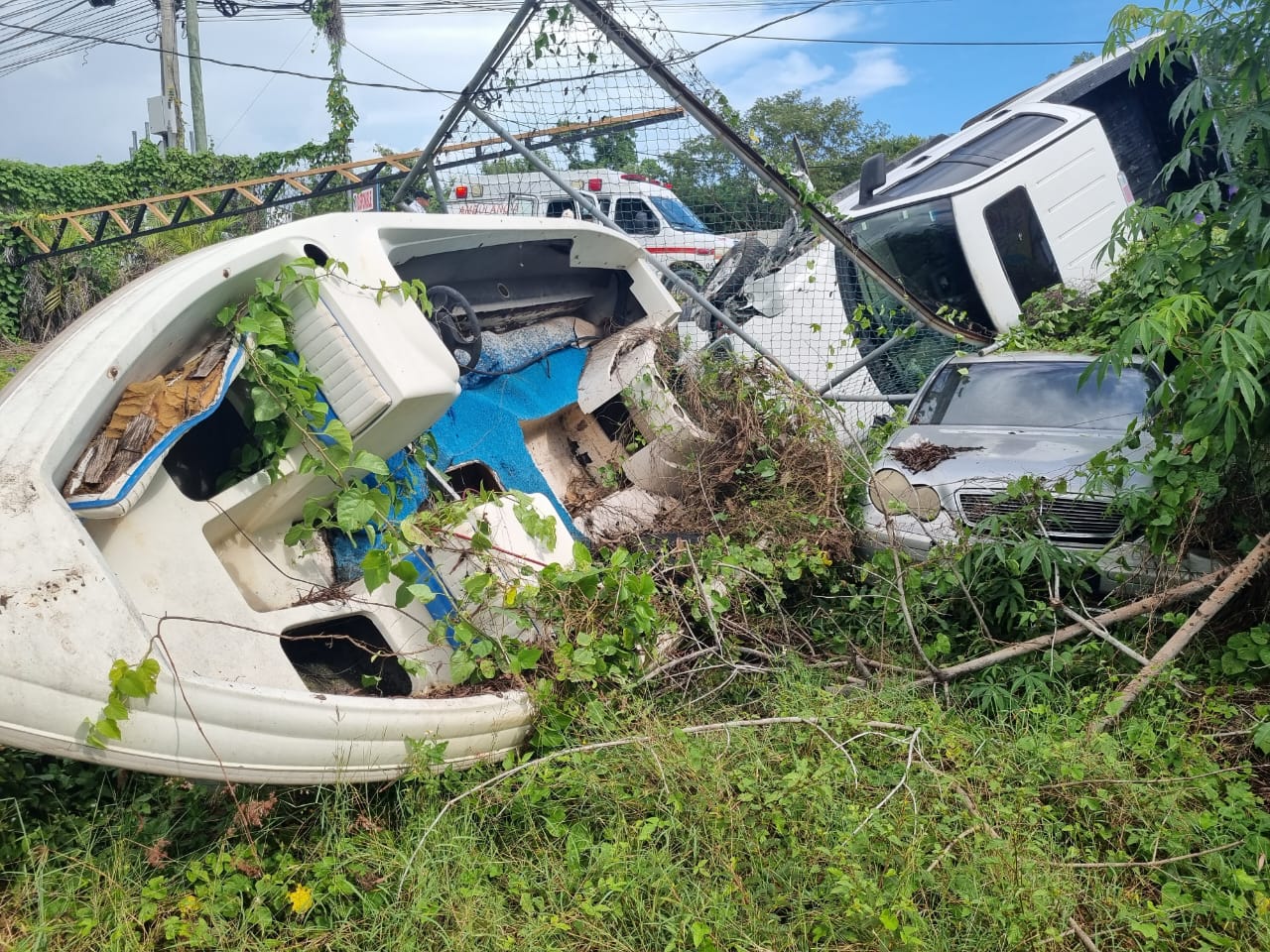 Presuntamente, ignoró las condiciones de la vía, lo que resultó en una colisión con un objeto fijo, una Mercedes Benz estacionada y una lancha en el predio cercano.