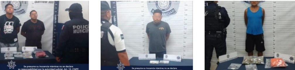 En otro momento durante la misma madrugada, elementos de la Policía Turística patrullaban sobre la Quinta avenida y a la altura de la calle 30 aseguraron a José “N” de 20 años de edad, originario de Tabasco en posesión de dos envoltorios con posible marihuana y ocho con polvo blanco al parecer cocaína.