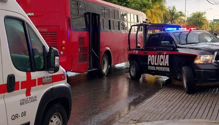 CANCÚN.- Chofer de Autocar provoca accidente por exceso de velocidad, una decena de personas fueron valoradas por paramédicos de la Cruz Roja en Cancún, aunque por fortuna no se registraron personas lesionadas e gravedad.