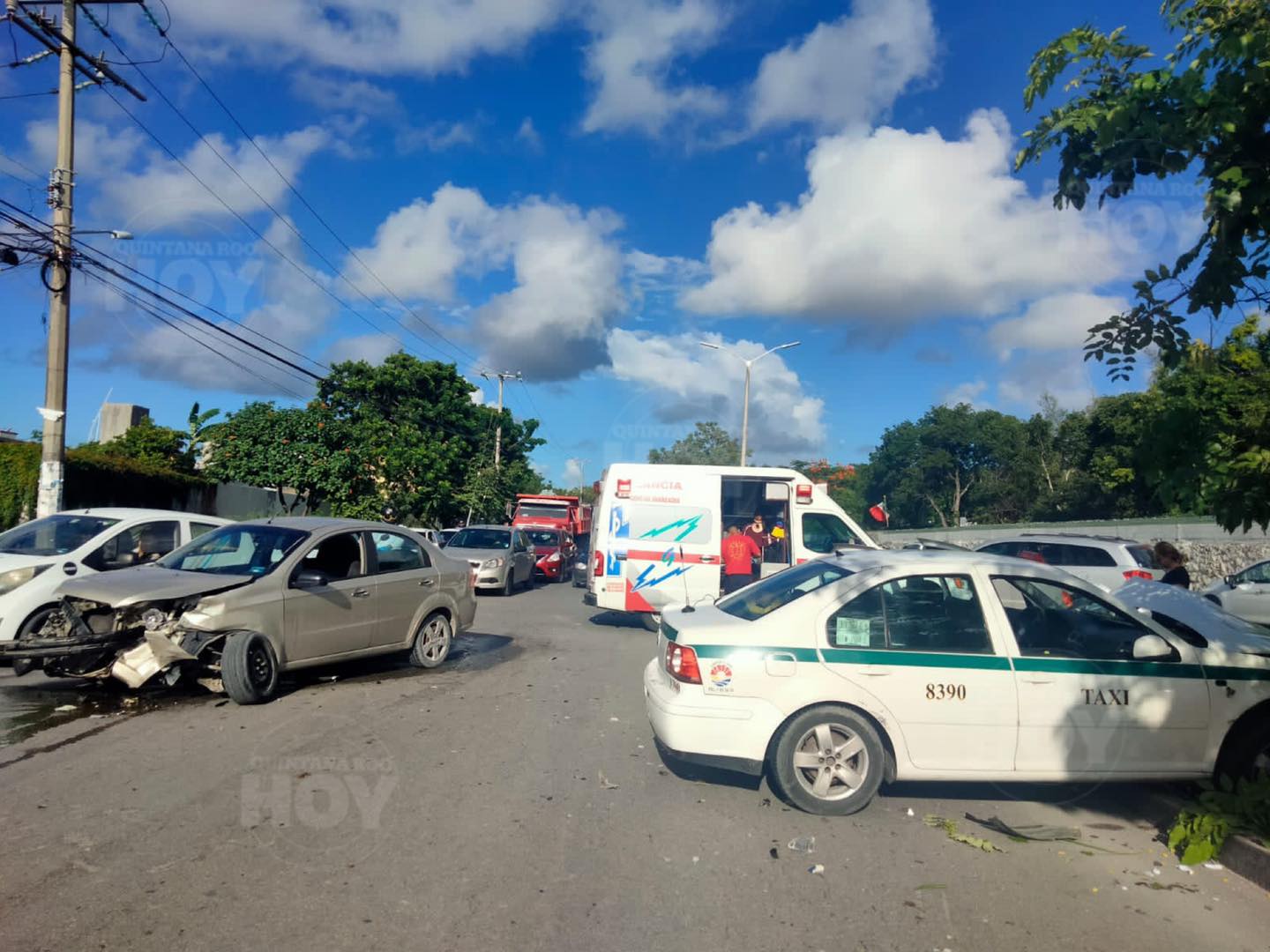 La falta se precaución de conductores y automovilistas ocasiona siniestros inesperado en diferentes puntos de la ciudad, sobre todo en esta temporada de lluvias es cuando más responsabilidades deben asumir las personas, el caso de hoy se reporto un accidente vial sobre la avenida Nichupté a la altura de una escuela secundaria.