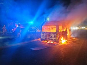 Los pasajeros y el chofer de la combi alcanzaron a descender de la unidad antes que esta fuera envuelta en llamas.