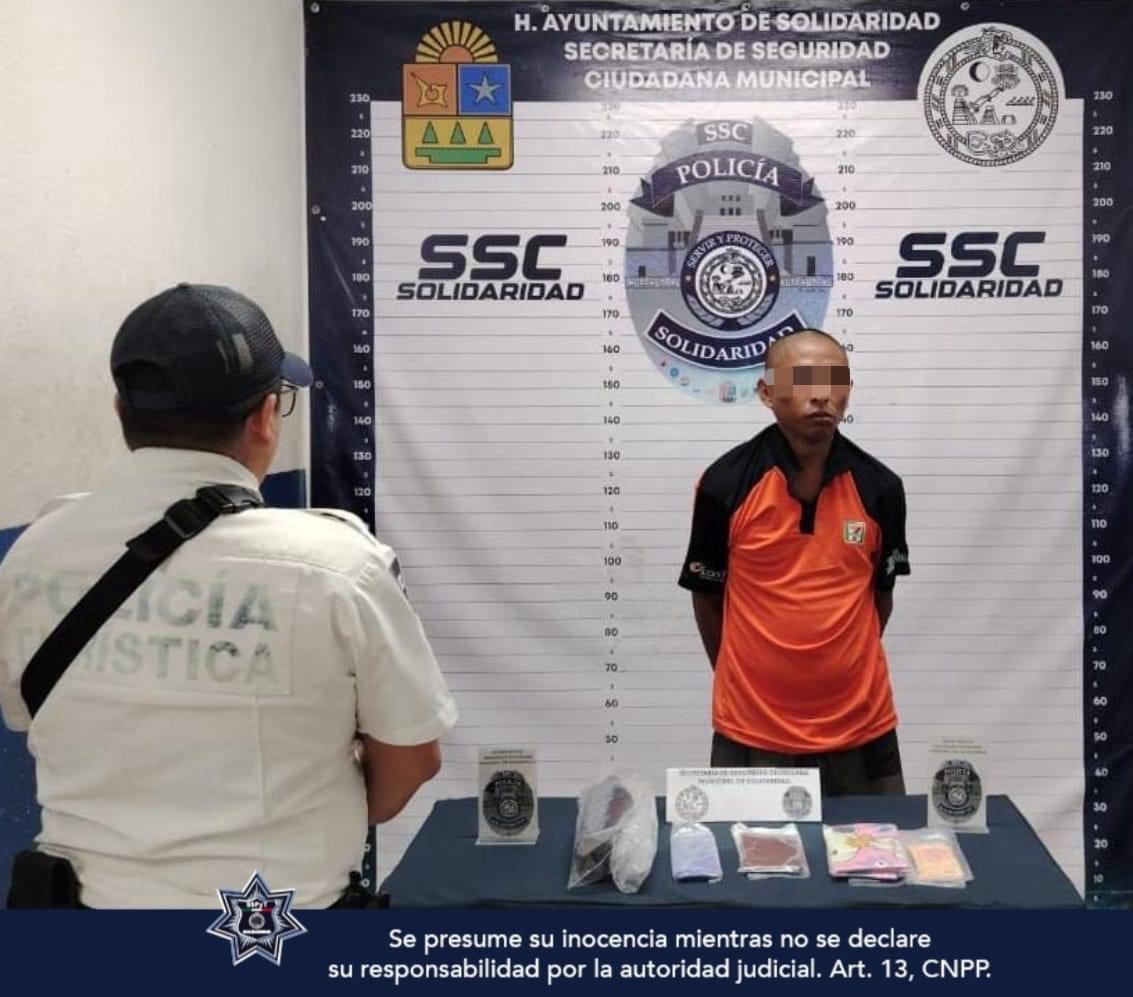 Solidaridad.- De forma efectiva, Policías Municipales de Solidaridad frustraron un robo en proceso y aseguraron a una persona como resultado de los operativos de proximidad y vigilancia en la Quinta Avenida.