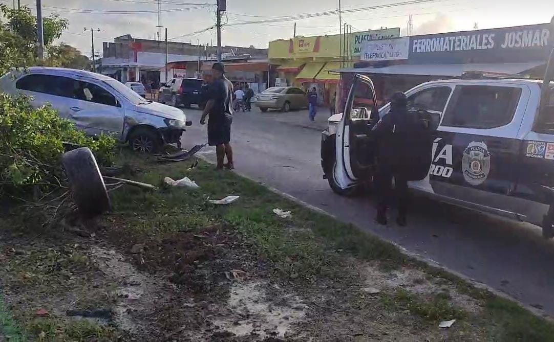 Cancún.- Esta mañana, un auto derribó un árbol, luego que su conductor perdiera el control en la avenida Prolongación Tulum de esta ciudad.