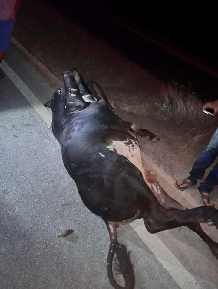 Al parecer, el conductor no se percató de la presencia de la vaca que a esa ahora andaba suelta en la carretera.