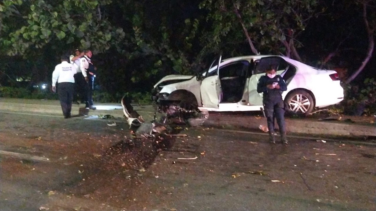 CANCÚN.- Un fuerte accidente se registró la noche de este martes en la zona hotelera de Cancún, donde un conductor que manejaba a exceso de velocidad, perdió el control de su vehículo y se terminó saliendo de la cinta asfáltica quedando sobre la banqueta a la altura del kilómetro 4 de Bulevar Kukulcán.