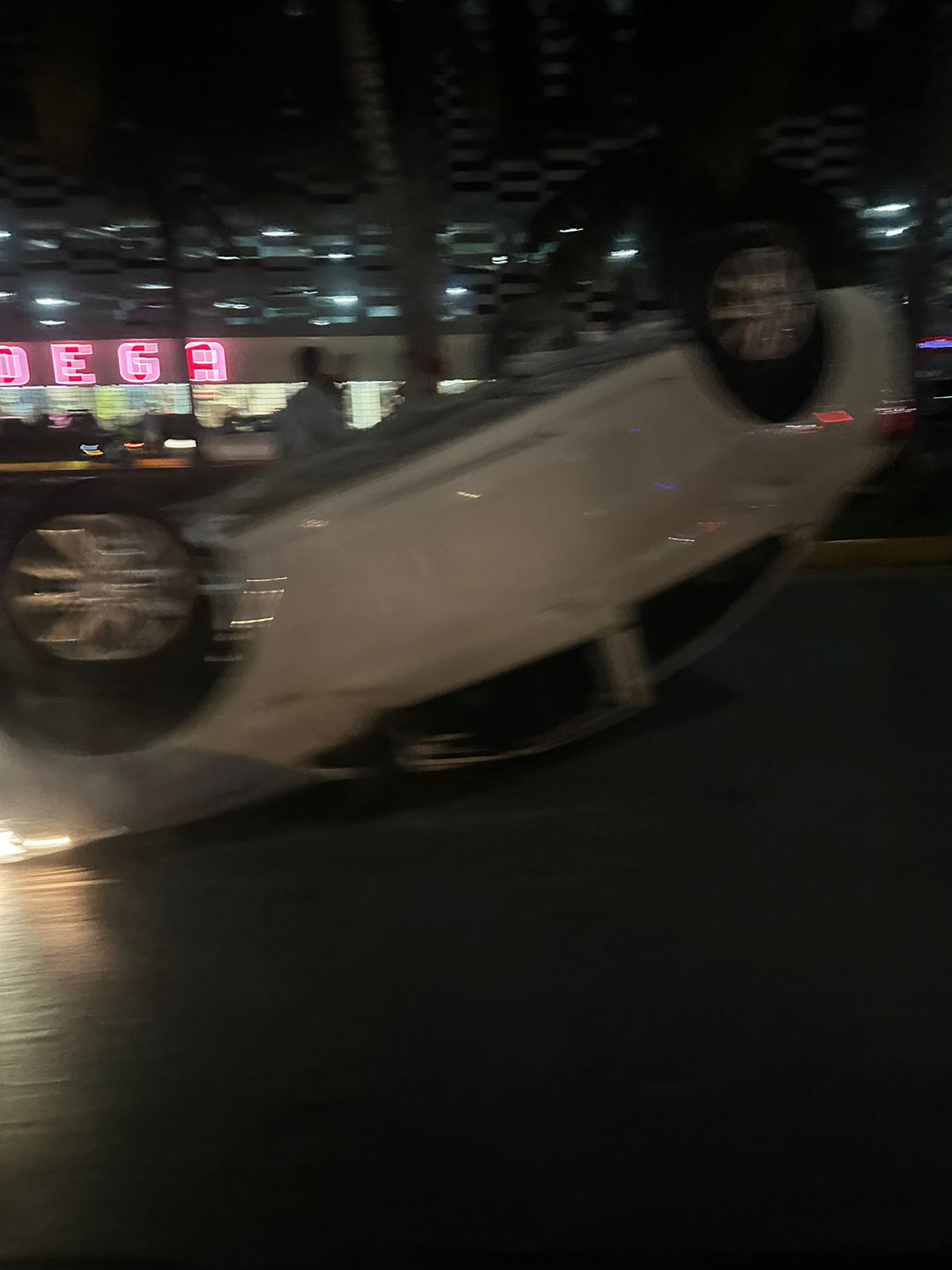 Cancún.-Tremendo susto se llevó el conductor de un vehículo compacto y su acompañante, pues terminaron volcados sobre la avenida Bonampak la noche de este jueves; por fortuna ambos resultaron ilesos, pero su vehículo tuvo daños materiales de consideración.