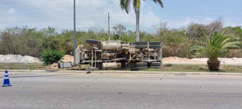 Playa del Carmen. -La volcadura de un camión dejó una persona lesionada; esto a la altura de Tres Ríos en la carretera Playa del Carmen-Cancún.