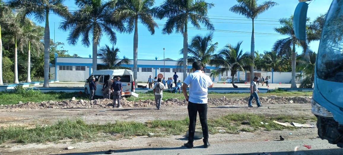Tulum.- Un aparatoso choque, protagonizado por una van de transporte público y un autobús, se suscitó esta mañana en el tramo carretero Tulum-Felipe Carrillo Puerto, con saldo de cuatro personas lesionadas, incluida una mujer embarazada.