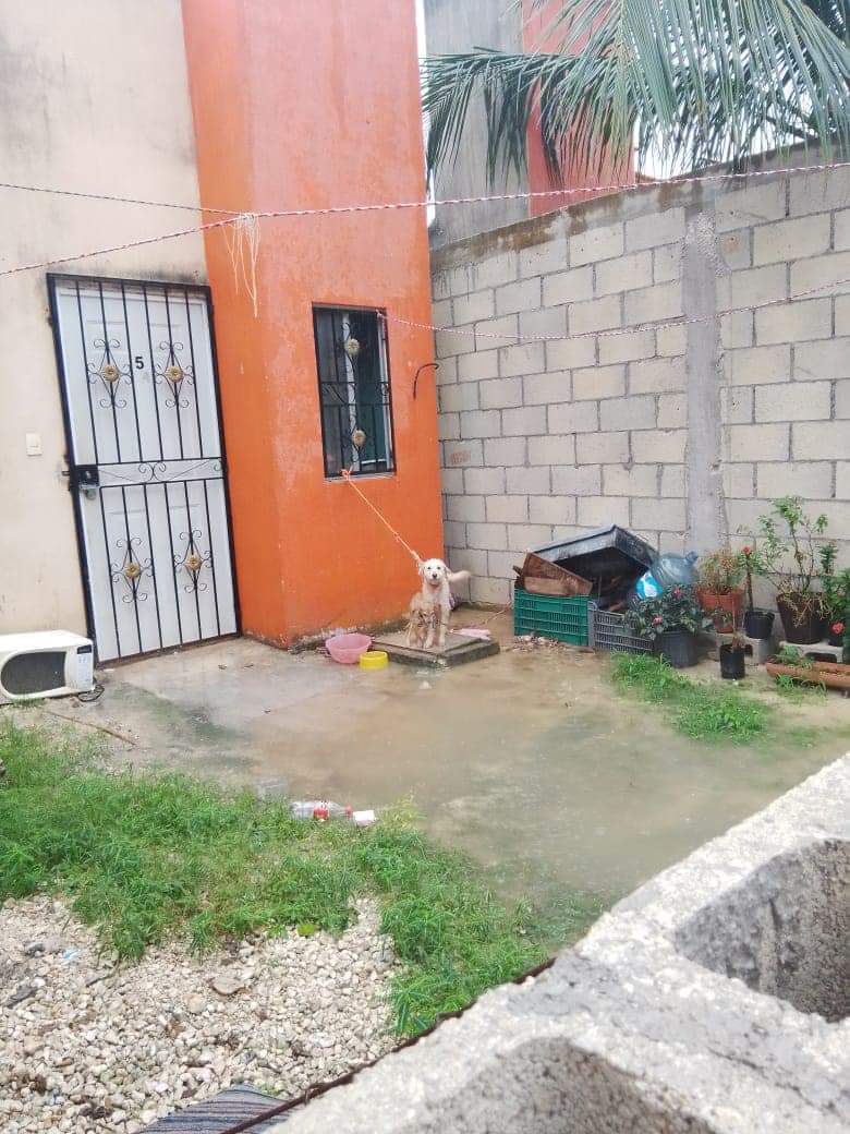 Playa del Carmen.- Unos perritos fueron dejados amarrados bajo las fuertes lluvias que se registraron ayer viernes.