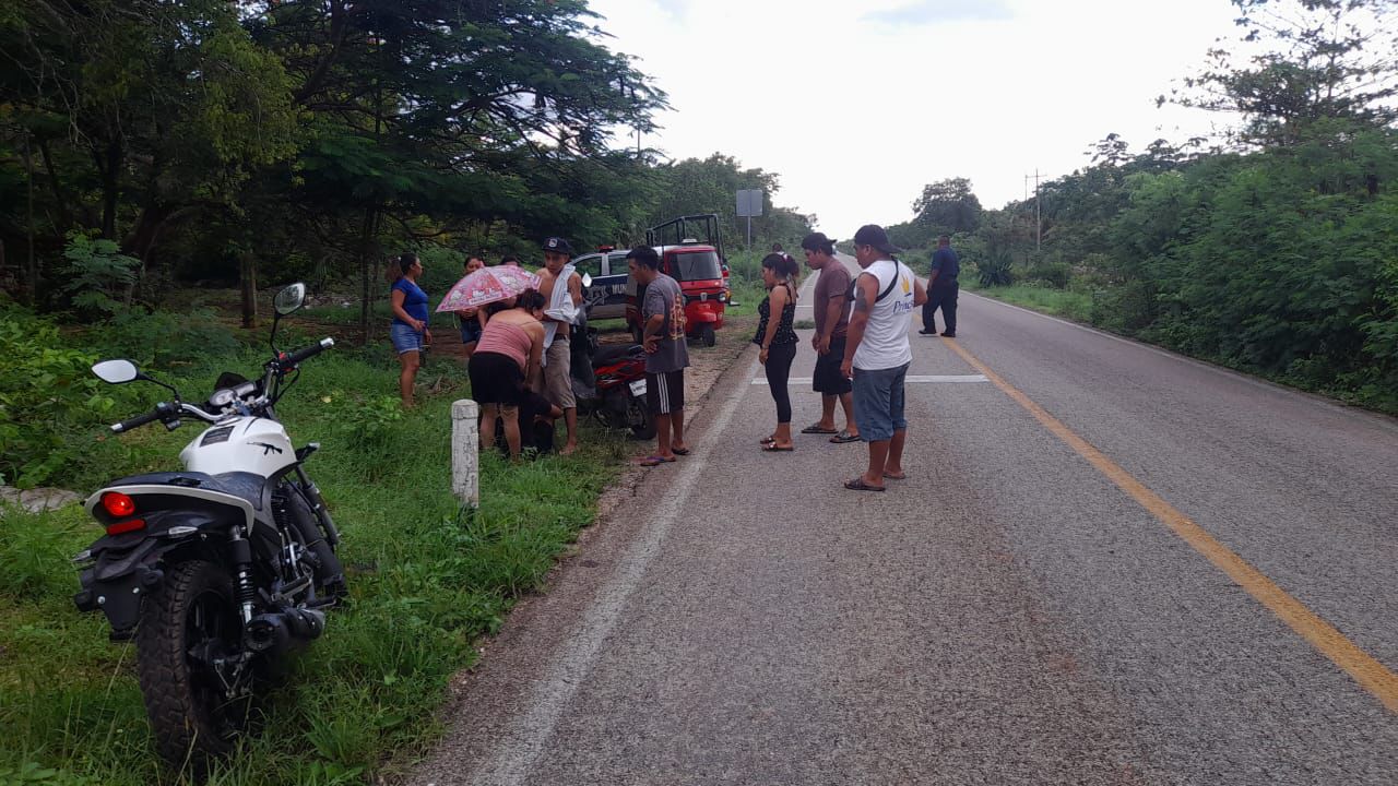 Manuel Chan Uicab .- Con la cara ensangrentada terminó un joven motociclista luego de derrapar en la comunidad de Señor.