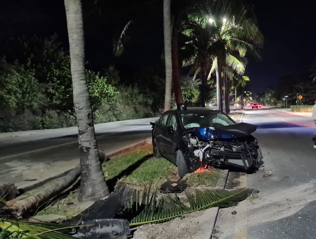 CANCÚN.- Un conductor abandonó su vehículo luego de chocar en la zona hotelera de Cancún, donde derribó palmeras durante esta madrugada de sábado 3 de febrero.