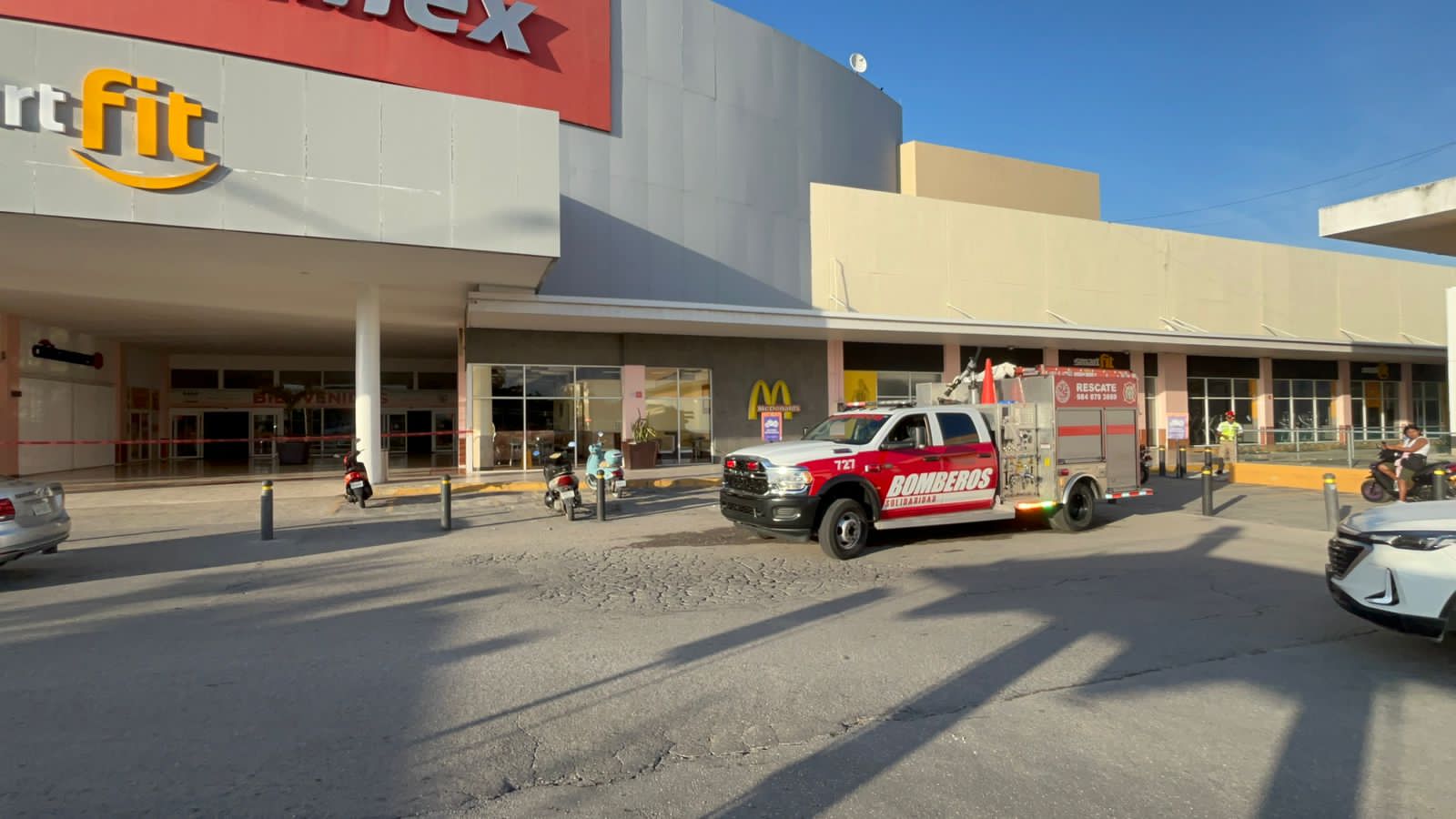 PLAYA DEL CARMEN.- La plaza Centro Maya que se ubica en el Bulevar Playa del Carmen tuvo que ser desalojada esta mañana por elementos del Cuerpo de Bomberos, luego que presentara una fuga de gas.