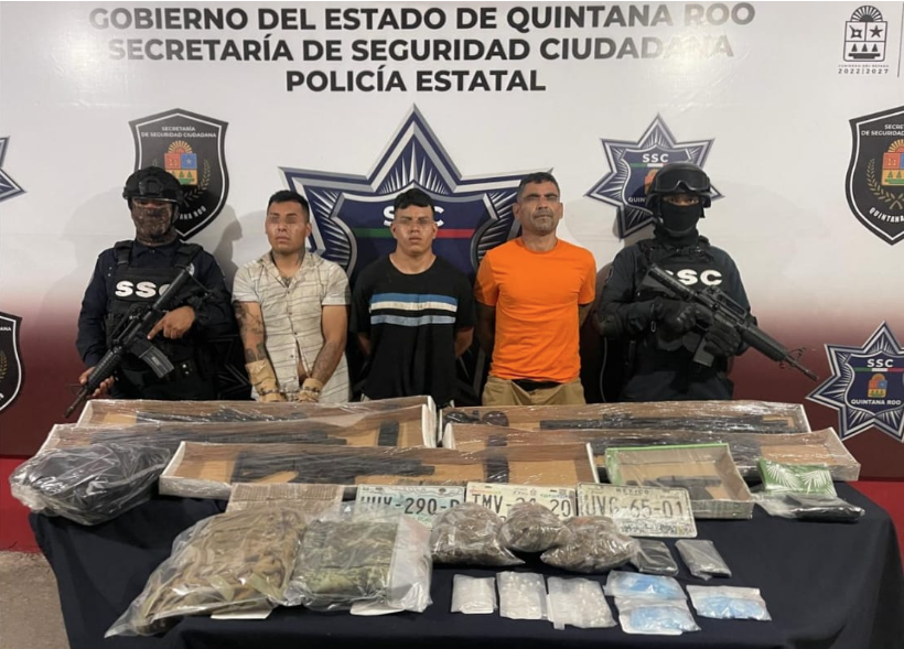CANCÚN.- En una operación policial coordinada, agentes de la Secretaría de Seguridad Ciudadana en Quintana Roo desmantelaron una presunta red de narcomenudeo en Cancún, deteniendo a tres individuos y decomisando un significativo arsenal de armas de fuego y drogas.