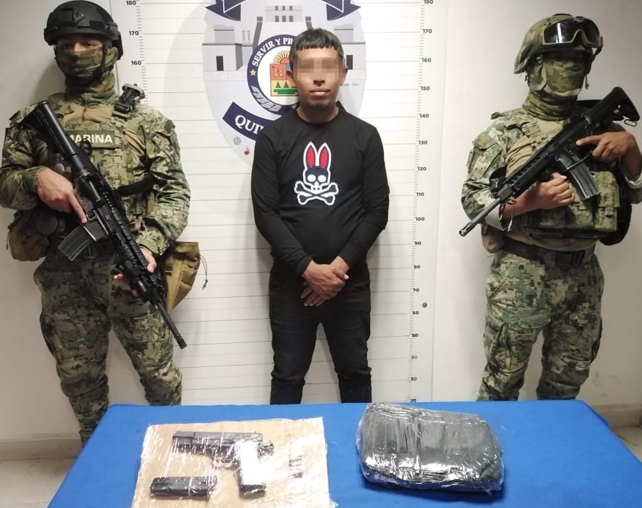Cancún.- Un hombre que se identificó como Henry “N” de 28 años de edad, fue detenido por policías de la Secretaría Municipal de Seguridad Pública y Tránsito de Benito Juárez, por el delito de encubrimiento y portación de arma de fuego.