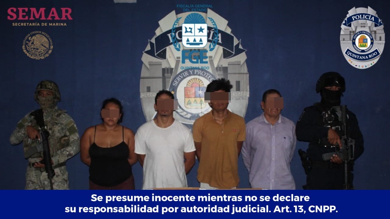 CANCÚN.- Elementos de la Policía Quintana Roo realizaron la detención de David “N”, Adonias “N”, Pascual “N” y Teresa “N”, por su probable participación en delitos contra la salud y portación de arma de fuego.