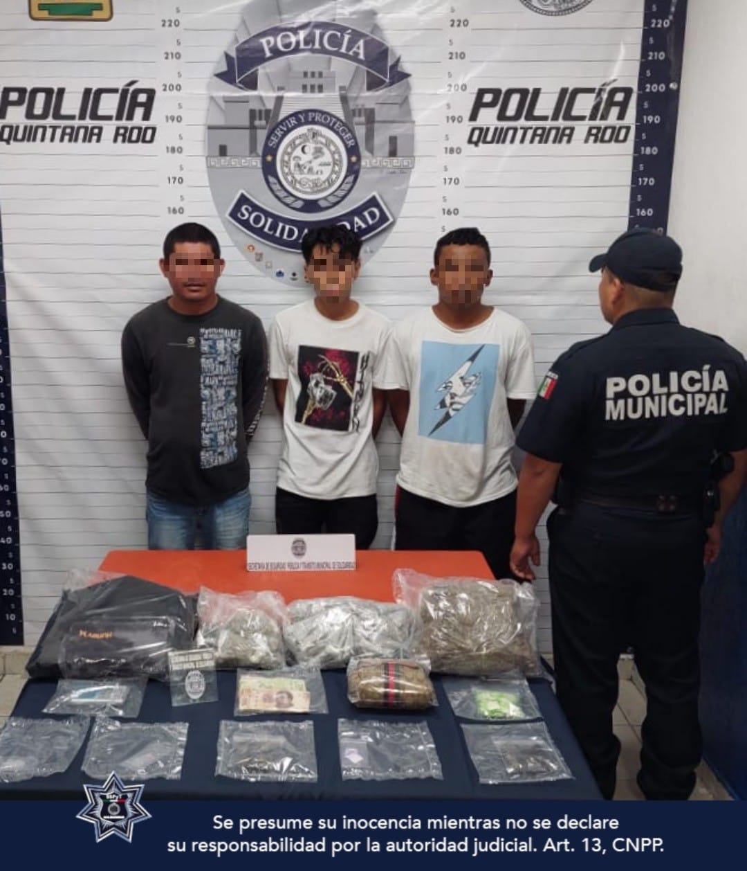 Ante la posible comisión de un delito y con la autorización de la persona propietaria, los oficiales ingresaron al domicilio donde aseguraron a Orlando “N” de 39 años de edad, originario de Quintana Roo, Daniel “N” de 20 años de edad, originario de Yucatán y a un menor de edad identificado como Vladimir “N” de 17 años de edad, oriundo de Quintana Roo, así como 102 envoltorios con lo que parece ser piedra, un envoltorio de posible posible marihuana, dinero en efectivo y una báscula.
