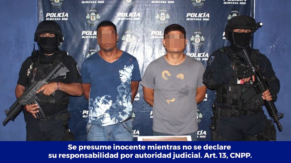 OTHÓN P.BLANCO.- Oficiales de la Policía Quintana Roo de Othón P. Blanco, realizaron la detención de Baruc “N” y Mauricio“N”, por su probable participación en el delito de portación de armas de fuego y cartuchos.