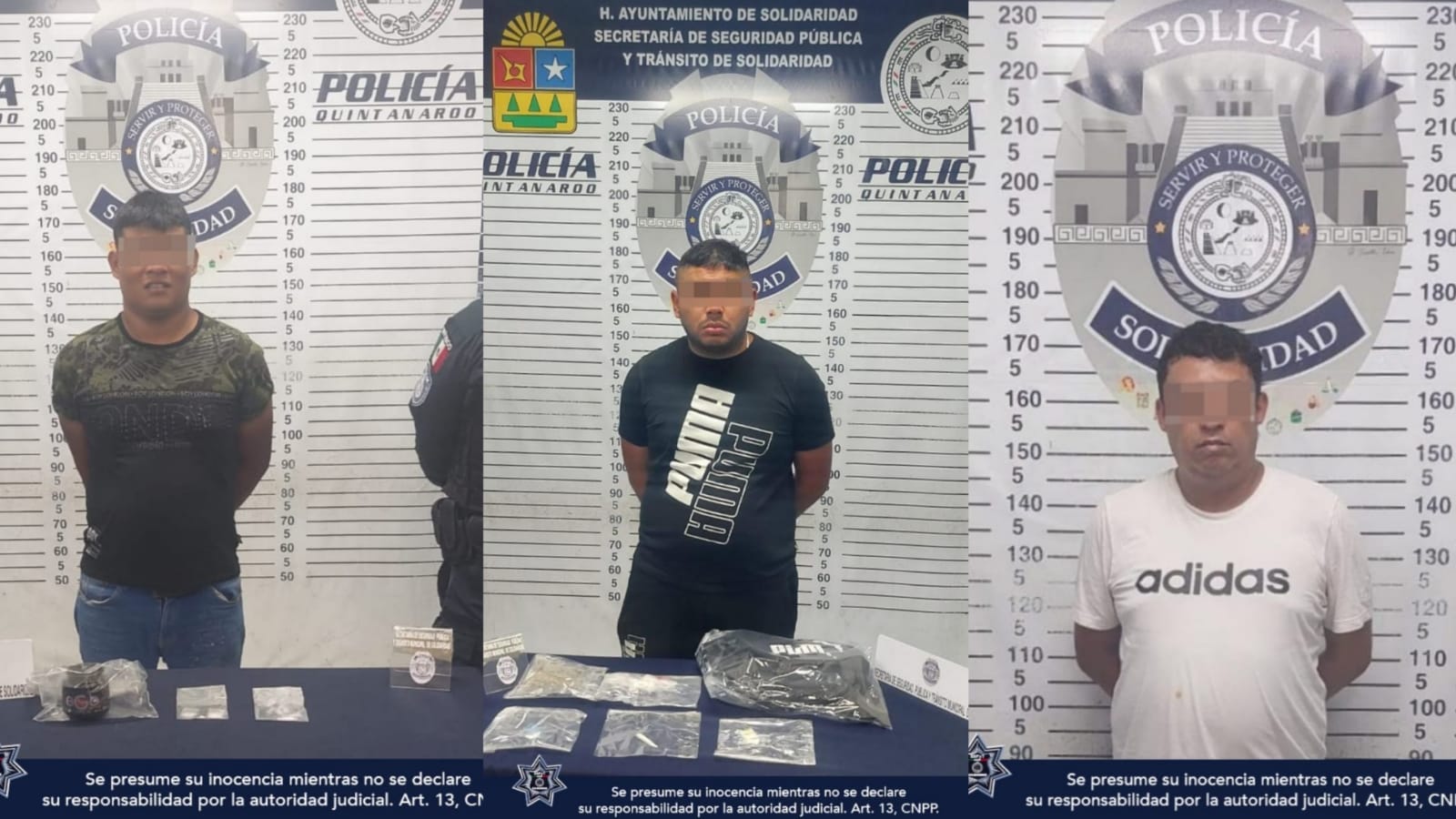 Playa del Carmen.- Tres sujetos fueron asegurados en distintos hechos esta noche por la posible comisión de delitos contra la salud, como resultado del despliegue de más policías y el incremento de los rondines de vigilancia de la Secretaría de Seguridad Pública y Tránsito Municipal de Solidaridad.